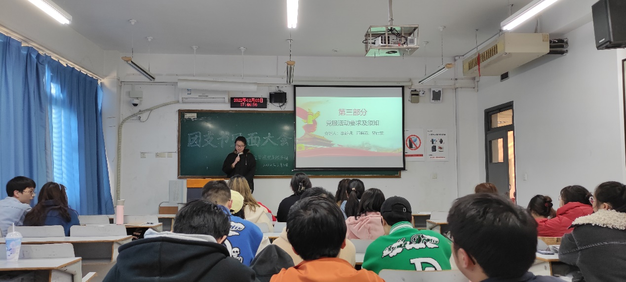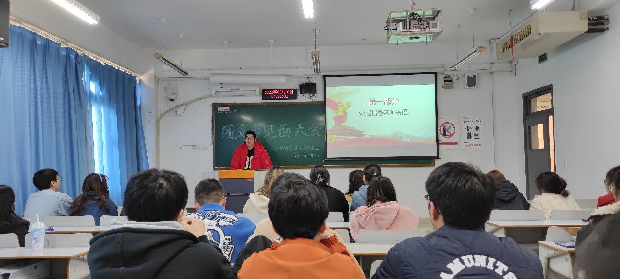 当前位置: 首页 >> 联系我们 >> 学团快讯 >> 正文 【公司党服】“新学期团支书见面大会”圆满结束 时间:2022年03月04日 17:19 来源:英国365上市公司 李恒 2022年3月3日,公司党员服务站新学期团支书见面大会于英国365上市公司博智楼407如期举行并圆满结束。本次见面大会旨在通过各班级团支书,让同学们更加了解党服的同时搭建起一架与入党积极分子和预备党员之间交流沟通的桥梁。 大会第一部分,由党服指导老师讲话。首先由站长廖偲宇说明本次见面大会的目的和期望,并介绍本次大会的大致流程。其次,由党服前指导老师郭爽老师进行讲话。郭爽老师对党服以往的工作进行大致总结并对大家的工作进行了肯定。与此同时,郭爽老师也希望大家继续秉持党的宗旨,将党服发展的越来越好。之后,党服现任指导老师李恒老师进行了自我介绍,并表示在今后将与大家共同成长,将党服不断做大做强。 大会第二部分,进行党服概况介绍及党服相关考核要求讲解。首先,新闻部干事彭诗懿对上学期党服开展的活动进行了视频总结,并对党服的指导老师、站长团及其分管部门、各部门工作内容进行简单介绍。其次,由站长团进行活动要求讲解及相关工作介绍。宣传部部长李新玥对上学期活动过程中出现的普遍性问题进行统一回复,并对相关要求做出说明。办公室部长邓晓燕对积极分子的发展和转正的要求进行说明,指出当前转正越来越严格,党服后续也会加大考核力度,希望大家能以更高的标准来要求自己。组织部部长吴仕龙向大家介绍了党服的规章制度、活动文件,并着重介绍了学习强国考核标准。 大会第三部分,入党流程介绍及站长寄语。首先,办公室干事王茜向大家介绍了入党流程、入党条件以及党员标准,让大家清楚入党流程的同时更坚定了大家的理想信念。然后,副站长张可艺对入党流程进行了补充说明,更加详细的介绍了入党的具体流程。其次,副站长林正毅对过去一学期里大家的各项工作进行了充分肯定,并希望在接下来的一学期里,大家能够继续愉快的合作。最后,站长廖偲宇对本次大会进行总结,希望大家不忘初心,砥砺前行。 本次见面大会,通过系统的向大家介绍党服活动要求及入党流程等内容,旨在让各位同学更加深入的了解党服,在今后以更高的热情参与到各项活动中去。同时,本次见面大会的顺利召开,也为本学期接下来的活动打下坚实基础,党服各成员也将有序展开各项工作,将党服建设的越来越好! 上一条:【公司党服】 “镌刻拼搏印记,绽放青春风采”冬季奥运会主题手抄报制作活动闭幕式圆满结束 下一条:关注员工内驱力----员工思想动态地图工作模式探讨 【关闭】