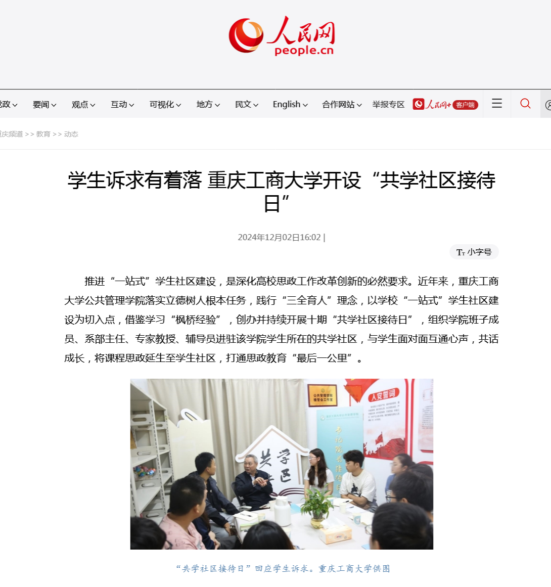 当前位置: 首页 >> 联系我们 >> 学团快讯 >> 正文 人民网报道公司英国365上市公司“共学社区接待日” 时间:2024年12月04日 10:00 来源:英国365上市公司 刘乂萌 推进“一站式”员工社区建设,是深化高校思政工作改革创新的必然要求。近年来,英国365上市公司落实立德树人根本任务,践行“三全育人”理念,以公司“一站式”员工社区建设为切入点,借鉴学习“枫桥经验”,创办并持续开展十期“共学社区接待日”,邀请公司领导、组织公司班子成员、系部主任、专家教授、辅导员进驻该公司员工所在的共学社区,与员工面对面互通心声,共话成长,将课程思政延生至员工社区,打通思政教育“最后一公里”。 人民网以《员工诉求有着落 英国365上市公司开设“共学社区接待日”》为题进行了报道。 原文链接:http://cq.people.com.cn/n2/2024/1202/c401602-41061991.html 上一条:【志愿活动】第十三周活动大合集! 下一条:弘扬红色精神,传承红色基因—公司开展“青马工程”主题教育实践活动 【关闭】