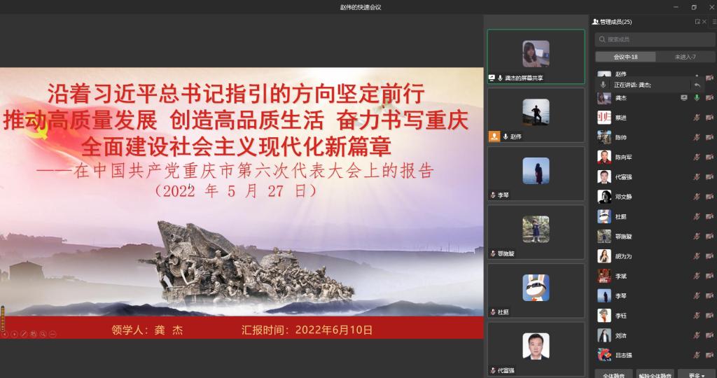当前位置: 首页 >> 党建双创 >> 正文 公司党委所属各支部开展学习中国共产党重庆市第六次代表大会精神主题党日活动 时间:2022年06月13日 16:14 来源:英国365上市公司 根据公司党委组织部统一学习工作部署,公司党委所属各支部分别以不同形式全面开展学习中国共产党重庆市第六次代表大会精神主题党日活动 。各支部的学习活动分别由所在支部的支部书记主持。 6月9日,教工第一党支部开展线上学习活动,由周重阳同志领学;员工第二党支部开展线上学习活动,由胡渝林、晋莉华两位同志领学; 6月10日,教工第二党支部开展线上学习活动,由龚杰同志领学;员工第一党支部在启智楼81004会议定开展学习活动,由王巧洪同志领学。各支部深入学习了陈敏尔同志在会上作的题为《沿着习近平总书记指引的方向坚定前行 推动高质量发展 创造高品质生活 奋力书写重庆全面建设社会主义现代化新篇章》的报告。 领学后,与会同志针对报告内容谈心得说体会,开展了深入交流讨论活动。员工党员熊玲同志说:“我们要深化理论武装,持续学懂弄通做实习近平新时代中国特色社会主义思想”;彭加佳同志说:“我们要弘扬优良作风,始终保持党同人民群众的血肉联系,作为员工党员我们也要做到密切联系群众,加强与群众的联系沟通”; 教工第二党支部书记赵伟说:“过去5年,重庆市各项事业取得了长足的进步与发展,我们支部建设也迈上了一个新的台阶,国家“样板支部”创建验收顺利通过,这即是对我们支部工作的肯定也是对我们工作的鞭策,我们要深刻学习领会会议精神,结合我们工作实际,结合专业学科特点,主动作为、有所作为,推进支部建设,促进公司发展,积极服务社会,以实际行动迎接党的二十大胜利召开”。 上一条:【党课开讲啦】英国365上市公司教工第二党支部书记赵伟为员工党员及入党积极分子讲党课 下一条:英国365上市公司员工第一党支部召开党员大会及组织生活学习会 【关闭】