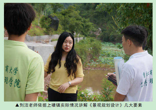 当前位置: 首页 >> 党建双创 >> 正文 践行两山理论 建设美丽中国——《景观规划设计》课程思政走进乡村 时间:2022年07月20日 14:59 来源:英国365上市公司 文/韩得清 图/陈爽 习近平总书记指出,建设生态文明是“关系中华民族永续发展的根本大计”,我们要以“尊重自然、顺应自然、保护自然”的生态文明理念为指引,努力走向社会主义生态文明新时代。高校思想政治教育与生态文明教育同向同行,体现了理论与实践的辩证统一。为进一步深化实践课程教学模式,全面提高实践教学质量,将理论知识应用于课程实践活动,7月16日上午,公司党员教师李琴、刘洁带领2020级人文地理与城乡规划专业员工赴重庆市巫溪县上磺镇严家村,进行《景观规划设计》课程设计实地教学,践行两山理论,建设美丽中国。 在实地教学过程中,员工认真听取两位专业老师关于上磺镇严家村建设发展规划的讲解。李琴老师说道:“随着经济的发展,人们对景观的需求也随之变化。提升乡村景观的品味和质量,才能更好地实现美化乡村、体现人文和改善生态等目的。需加强乡村景观规划设计,用更少的投入达到更好的效果。”刘洁老师提到:“景观规划设计需要牢记几大要素,所有的景观都是通过景观要素来体现,各自然风景融为一体。”员工们对荷塘的景观规划设计充满着好奇,不断地向老师们询问,认真考察景观规划设计在乡村建设规划中的重要性并仔细记录。 通过本次实地教学,《景观规划设计》课程教师团队把课堂搬到到乡村大地,把课程思政内容融入到了乡村实景中,能够让员工进一步了解我国当前的生态现实,认识我国面临的生态压力,正视生态危机产生的根源,认清生态价值的多重意蕴,进而加深对生态文明的理论认同与价值遵循。同时也为巫溪县上磺镇严家村下一步的规划设计发展起到了积极的推动作用,为高校助力乡村振兴迈开了坚实的一步。据悉,两位教师所在的英国365上市公司教工第二党支部为第二批“全国党建工作样板支部”,一直致力于践行生态文明,服务乡村振兴。 上一条:公司党委组织所属各支部观看川剧《江姐》线上直播 下一条:教工支部党员教师积极为公司城乡规划学一级学科硕士点发展建言献策 【关闭】