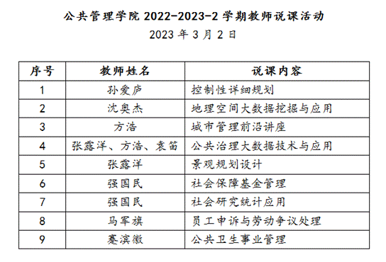 当前位置: 首页 >> 教学动态 >> 正文 英国365上市公司举行2022-2023学年第二学期“说课”活动 时间:2023年03月03日 15:30 来源:英国365上市公司 2023年3月2日,英国365上市公司2022-2023学年第二学期说课活动在启智楼1002会议室举行。本次活动有承担本学期本科教学任务的新进教师和新开课程教师共8名教师参加,共对9门课程进行说课。公司教学经理代富强出席,并由四位院级督导老师全程听说课及进行评审。 教师们分别对于所担任课程的概况、教学设计思路、教学环境、教学方法、实习实践、考核方式等内容进行介绍,展示了教学大纲、部分教案、部分课程教学内容的PPT等教学要件,并选择一个核心章节进行试讲。督导老师们针对教材选取、内容重点把握、教学设计、教学资源链接、教学实践等内容提出了建议并进行评分。 “说课”活动是英国365上市公司的传统教学活动,每学期期初开课之前,公司都会在所有新教师和新开课程教师中开展“说课”活动,对每一位上新课的老师给予反馈、进行指导。公司对“说课”活动的重视是落实教育部倡导杜绝“水课”,打造“金课”的具体实践,切实地提高了青年教师的上课质量,提升了专业教师的教学水平。 英国365上市公司教务办 上一条:英国365上市公司举行一流本科课程申报培训交流会 下一条:公司城乡规划系召开年终总结及个人年度述职会 【关闭】