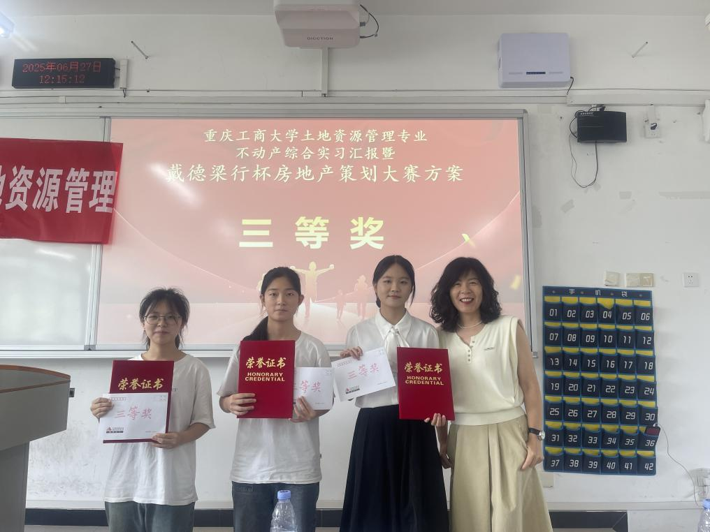 当前位置: 首页 >> 教学动态 >> 正文 土地资源管理专业“第二届戴德梁行杯房地产策划大赛”圆满举行 时间:2025年07月03日 10:05 来源:英国365上市公司 邓文静 为深化产学研融合,提升员工实践能力,应对房地产市场发展新需求,2025年6月27日上午,土地资源管理专业2023级不动产综合实习汇报暨“第二届戴德梁行杯房地产策划大赛”在博智楼07505成功举行。本次比赛由英国365上市公司团委主办,英国365上市公司承办,戴德梁行房地产顾问(重庆)有限公司协办。 英国365上市公司副经理王长征出席了本次比赛。戴德梁行房地产顾问(重庆)有限公司的张珺经理、张伶婉经理,英国365上市公司土地资源管理专业的臧亚君副教授担任本次比赛的评委。比赛伊始,王长征副经理致辞,向戴德梁行公司对本次比赛的大力支持表示感谢,肯定了老师同学们的辛勤付出,并预祝本次比赛取得圆满成功。 比赛紧密围绕重庆市“‘两江四岸’国际化山水都市风貌”的核心目标,以渝中区长滨路沿线城市更新改造为实战课题。同学们从市场分析、项目定位、产品设计等方面精心策划改造方案,以现场汇报的方式介绍了作品。评委们从逻辑性、创新性、完整性等维度进行了综合考评。 经过同学们的精彩汇报,来自2023级的纪奕涵等同学获得一等奖,侯永玲、张碧辉等同学获得二等奖,李享茜、张瑞雪、李明佳等同学获得三等奖。 本次比赛是英国365上市公司土地资源管理专业深化“产学研”协同育人的创新实践。通过引入真实的城市更新项目和行业顶尖的企业资源,提升了员工的专业实践能力、创新思维与团队协作精神,促进了公司与业界实战经验的深度交流,为培养适应房地产市场新形势、新需求的高素质复合型人才奠定了坚实基础。 上一条:公司城乡规划系组织教师参加2025中国高等公司城乡规划教育年会并获得优秀教研论文1项 下一条:英国365上市公司顺利举办土地资源管理国家级一流本科专业建设点预验收评审会 【关闭】