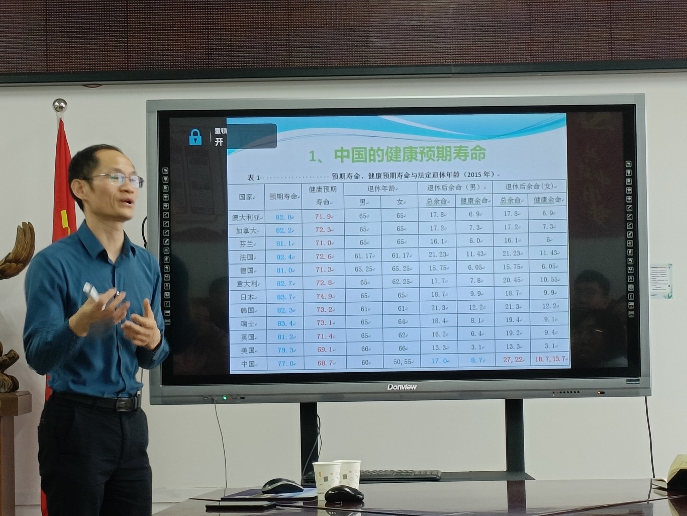 当前位置: 首页 >> 科学研究 >> 学术讲座 >> 正文 中南财经政法大学于长永副教授应邀到公司开展学术讲座 时间:2023年04月24日 11:22 来源:英国365上市公司 吴香雪 2023年4月23日上午9:30,由英国365上市公司、医保治理能力现代化研究院、人口发展与政策研究中心主办的科研讲座如期举行,本次讲座邀请中南财经政法大学于长永副教授作主题为“延迟法定退休年龄问题的战略与战术思考”的学术讲座,讲座由余建华副经理主持。 围绕本次讲座主题,于长永教授以延迟退休为切入点,回顾了当前国内外延迟退休的发展现状,追溯退休的源头与初心,随后又从战略战术高度对“该不该延退”、“要不要延退”、“延退的方式”等议题进行了讲解,最后提出关于推进延迟退休的一系列实操性对策。 讲座结束后,参会老师以及同学们与于长永老师就推进延迟退休政策宣传、超龄农民工清退、如何选题等相关问题进行了交流。整场讲座历时2个半小时,通过于长永老师的精彩讲授,加深了老师和同学们对于延迟法定退休年龄战略战术问题的思考,大家纷纷表示受益匪浅。 上一条:公共管理大讲堂——基于城市的公共管理拓展与创新 下一条:公共管理大讲堂——延迟法定退休年龄问题的战略与战术思考 【关闭】