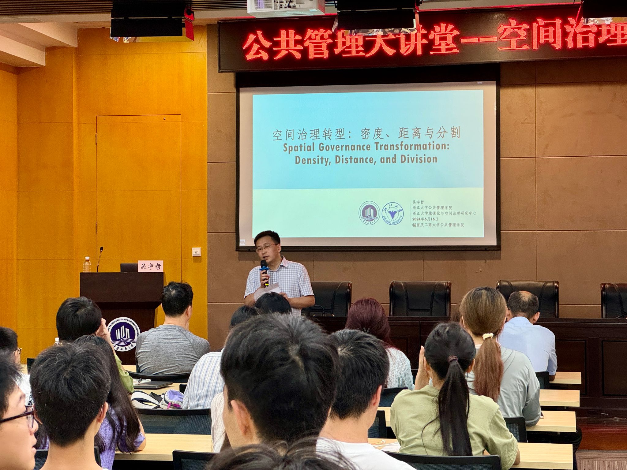 当前位置: 首页 >> 科学研究 >> 学术讲座 >> 正文 公共管理大讲堂——浙江大学英国365上市公司吴宇哲教授做“空间治理转型:密度、距离、分割”学术讲座 时间:2024年06月18日 16:04 来源:英国365上市公司 2024年6月16日,浙江大学英国365上市公司吴宇哲教授为英国365上市公司师生做“空间治理转型:密度、距离、分割”学术讲座,讲座由余建华副经理主持。本次讲座吸引了校内外的众多学者、师生以及土地资源管理与城乡规划领域的专业人士前来聆听与交流。 吴宇哲教授作为城市管理与房地产发展领域的专家,从密度视角探讨了城市化建设的集聚与宜居、从距离视角探讨了区域发展的时间与正义、从分割视角探讨了区域一体化的边界与产权。讲座现场,吴宇哲教授通过生动的案例和详实的数据,对如何进行有效的空间治理转型进行了深入剖析。 在讲座的互动环节,师生们积极提问,吴宇哲教授耐心解答,现场气氛热烈。师生们纷纷表示,本次讲座内容丰富、见解独到,对他们深入了解空间治理转型具有重要的指导意义。 此次讲座不仅为师生们提供了一个深入了解空间治理转型的宝贵机会,也为土地资源管理与城乡规划领域的专业人士提供了一个交流与学习的平台。通过本次讲座,大家更加深刻地认识到了空间治理转型的重要性与紧迫性,为未来的城市发展提供了有益的启示和思路。 上一条:公司城乡规划系教师受邀参加2024第九届青年地学论坛并作主题报告 下一条:公共管理大讲堂——空间治理转型:密度、距离、分割 【关闭】