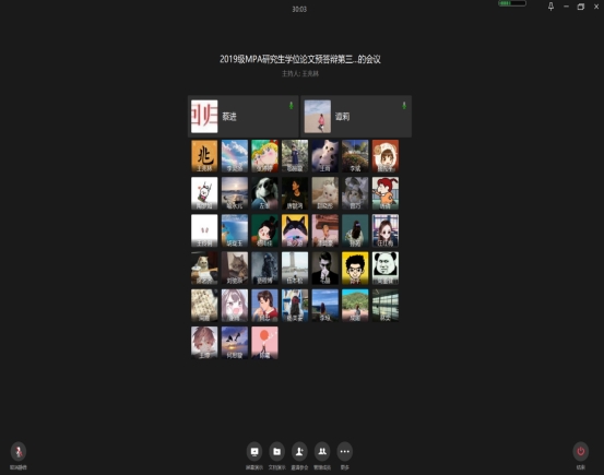 当前位置: 首页 >> 研究生教育 >> 工作动态 >> 正文 首届MPA研究生学位论文预答辩顺利结束 时间:2022年03月14日 14:19 来源:英国365上市公司 首届MPA研究生学位论文预答辩顺利结束 公共管理公司于2022年3月13日在企业微信分3个小组、采用员工线上、预答辩指导老师线下、师生线上线下相结合的方式,对首届14名2019级MPA研究生硕士学位论文进行了预答辩。20级和21级全体MPA研究生全程旁听。 早8:30,分管研究生工作副经理余建华教授在企业微信主持召开2019级MPA研究生预答辩工作启动会,重点强调了预答辩的重要性及细节要求;8:45主持召开预答辩指导老师预备工作会,对预答辩工作提出具体要求、评判标准等注意事项,然后开始分组预答辩。 经过一上午的紧张工作,12:00分组预答辩结束,指导老师们在启智楼81004会议室召开总结会,总结分组答辩情况,分析存在主要问题,并集中研究讨论预答辩后续工作重点,指明努力工作方向后。预答辩工作顺利结束。 上一条:2022年新增硕士研究生学业导师遴选代表性学术成果认定标准 下一条:公司召开MPA新增事业导师聘任暨公司产品座谈会 【关闭】